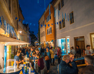 Die Händlerinnen und Händler laden zum "Blauen Fest". Für den sommerlichen Genuss zur abendlichen Stunde sorgen kühle Getränke, selbstgemachte Köstlichkeiten, Musik von Weimarer Künstlerinnen und Künstlern, Clownerie, Basteln und Kinderschminken.