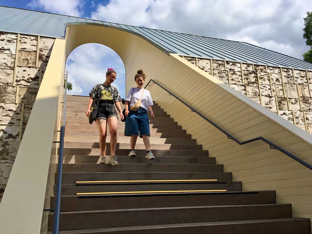 In einer interaktiven Rauminstallation haben Sie die Möglichkeit, sieben Tourenhighlights zu entdecken und Thüringen auf ganz neue Art und Weise zu erleben. Der weithin sichtbare, spannungsvolle Neubau mit einer Fassade aus Birkenrinde macht im Inneren auf die Schönheit und den Reichtum der Kulturlandschaft Thüringens aufmerksam. Für zunächst fünf Jahre stellt das Erlebnisportal Weimar hier eine räumliche, formale und inhaltliche Verbindung zwischen dem Gartendenkmal Park an der Ilm und den Gebäuden der Weimarer Klassik her.
