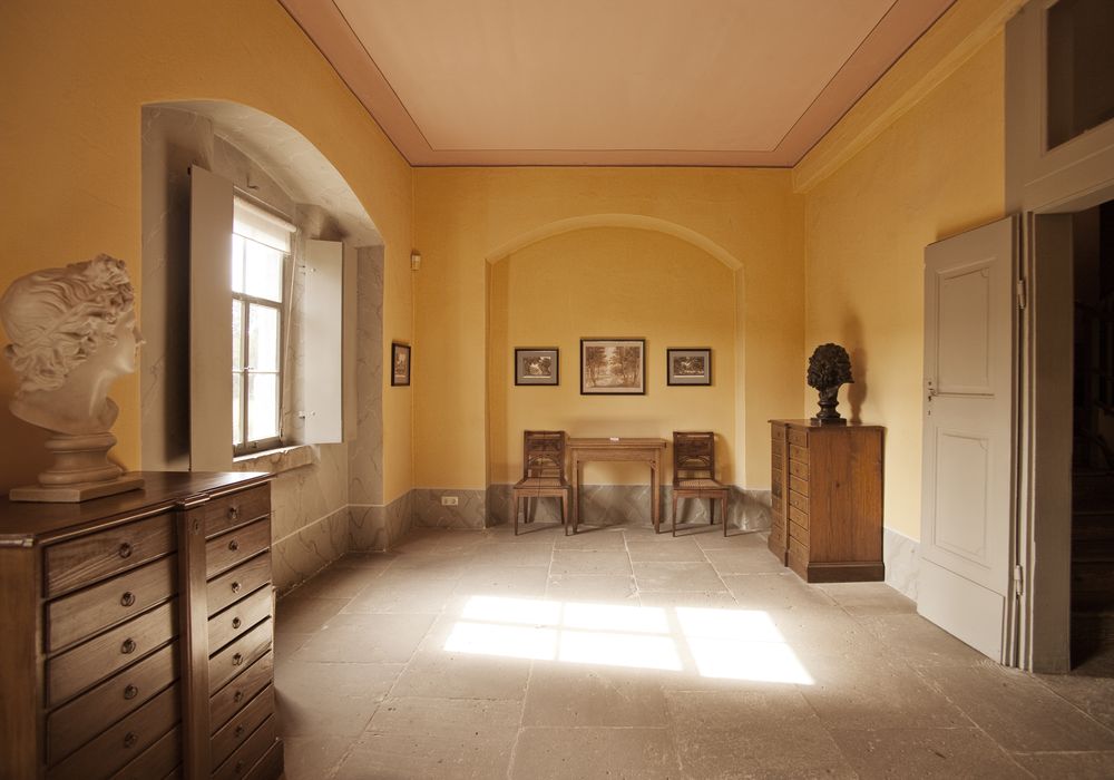 Die ausgestellten Einrichtungsgegenstände sind Teil des ursprünglichen Inventars. Besonders augenfällig ist das Stehpult mit Sitzbock im Arbeitszimmer und das Klappbett im Schlafbereich. Die gezeigten Bilder und Objekte stammen aus Goethes Nachlass.