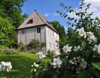 Goethe-Gartenhaus und Garten am Stern terassenartige Anlage am Hang mit Stufen, für Rollstuhlnutzung nicht geeignet