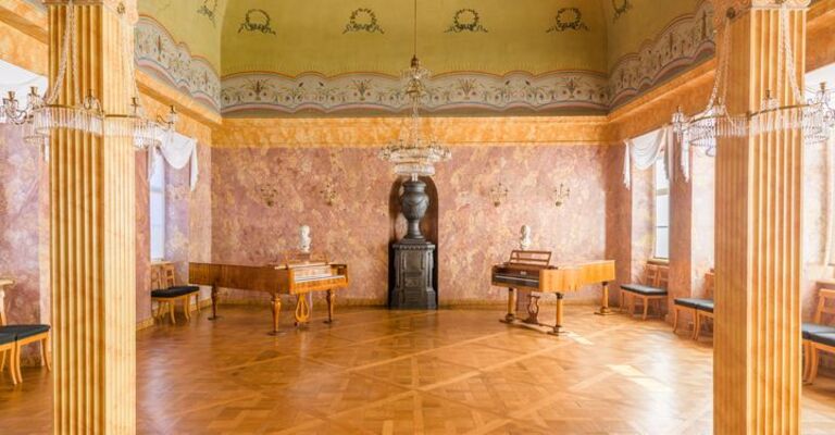 Geführte Tour mit Musik, mit dem Pianisten Bastian Uhlig an den historischen Tasteninstrumenten.