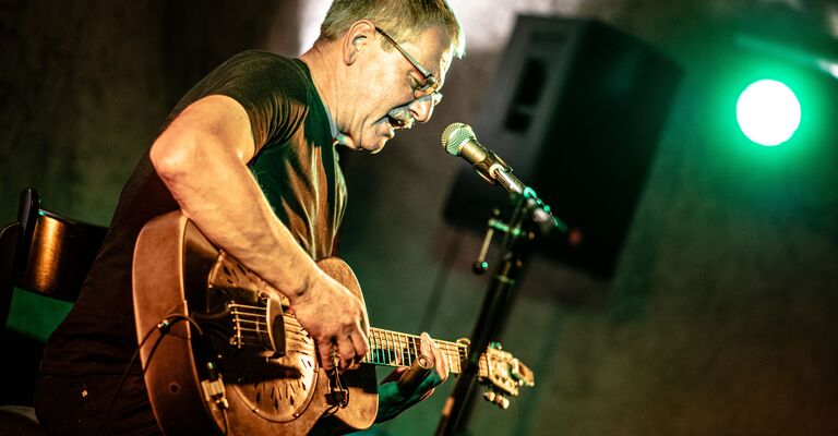 Wolfgang Kalb gräbt die Wurzeln des Blues aus der Anfangszeit dieser Musikzeit aus und bringt sie zum Leuchten. Fingerpicking und Slider auf diversen Resonatorgitarren sind seine Spezialität.