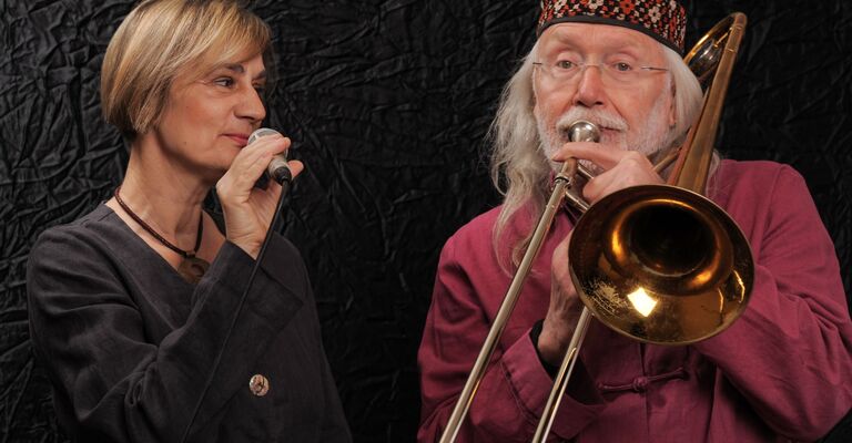 Die Musik des Duos lebt von der ineinander gewebten Verbindung einer fein timbrierten Stimme und einer Posaune mit der Intensität des Blues, ergänzt durch live-elektronische Instrumente und Percussion.