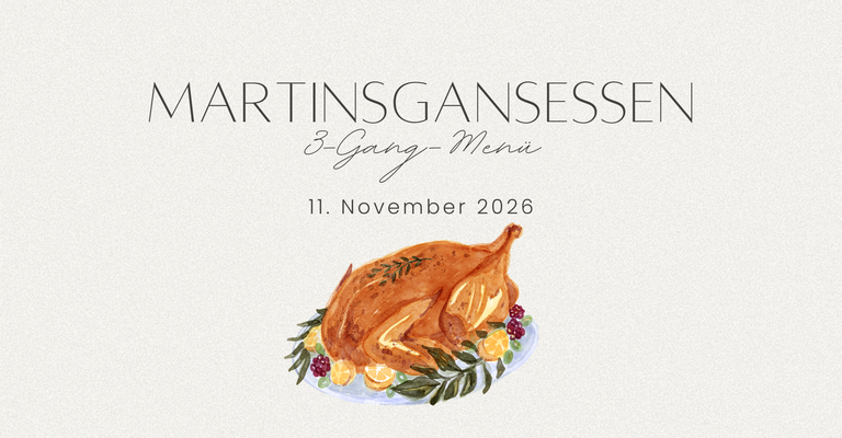 Am 11. November 2026 feiern wir den Martinstag mit einem besonderen kulinarischen Erlebnis. Freuen Sie sich auf ein 3-Gang-Gänsemenü, das zu den lukullischen Highlights im November zählt.