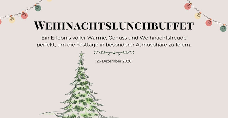 Zwischen 12.30 Uhr und 14.30 Uhr erwartet Sie eine festliche Auswahl an winterlichen Köstlichkeiten – von aromatischen Vorspeisen über traditionelle Fleisch- und Fischgerichte bis hin zu liebevoll zubereiteten, weihnachtlichen Desserts. Unser Küchenteam verwöhnt Sie mit Spezialitäten, die die Magie der Weihnachtszeit einfangen und Genussmomente für alle Sinne schaffen.