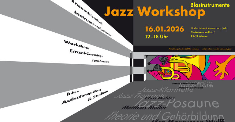 Instrumental- und Gruppenworkshops für studieninteressierte Blech- und Holzbläser der Fächer Jazz-Saxophon, Jazz-Posaune, Jazz-Trompete, Jazz-Flöte sowie Jazz-Klarinette